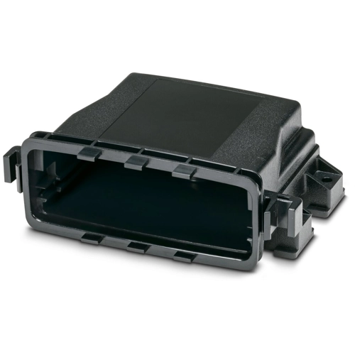 Snap-in locking vented enclosure of the ECS Family. IP66/67/69 rated when mated with associated faceplate. Color: Black (9005), Width: 172 mm, Height: 116 mm, Depth: 64.