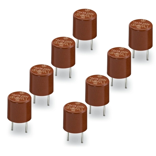 Fuse set, number: 8 pieces, fuse type: fuse (TR5), nominal current: 0.63 A, tripping characteristic: slow-blow (T).