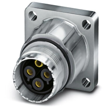 Panel connector, front panel, straight, for standard and SPEEDCON locking, M17, number of poles: 5+PE, contact type: female, crimp connection, O-ring axial, 4x Ø 3.2, shielded: yes, flange dimension: 25.75 mm x 25.75 mm