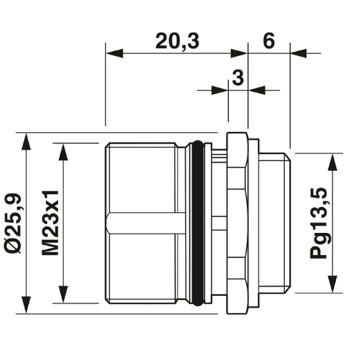 Panel connector, front panel, straight, shielded: yes, for standard and SPEEDCON interlocking, M23, pole count: 12, contact type: male, crimp connection, axial sealing, central mounting Pg13.5