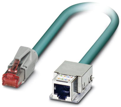 Assembled Ethernet cable, CAT6, shielded, 4-pair, AWG 26 stranded (7-wire), RAL 5021 (water blue), RJ45 socket module/IP20 for Freenet system, 8-positions on RJ45 plug/IP20, line, length 2 m.