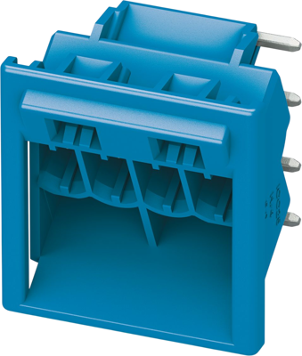 PCB headers, nominal cross section: 2.5 mm², color: blue, nominal current: 16 A, rated voltage (III/2): 320 V, contact surface: Sn, contact connection type: Pin, number of potentials: 4, number of rows: 1, number of positions: 4, number of connections: 4, product range: ICC..-H/..R5,0, pitch: 5 mm, mounting: Wave soldering, pin layout: Linear pinning, solder pin [P]: 3.5 mm, number of solder pins per potential: 1, plug-in system: ICC 2,5, Pin connector pattern alignment: Standard, locking: Snap-in locking, mounting method: without, type of packaging: Box packaging, Product with pin output on right side.