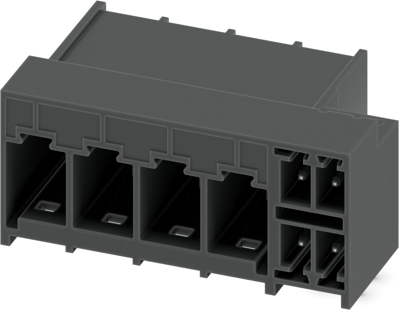PCB hybrid header, nominal cross section: 6 mm², color: black, nominal current: 41 A, 8 A, rated voltage (III/2): 630 V, contact surface: Sn, contact connection type: Pin, number of rows: 1, number of positions: 8, product range: PCH 6/..+4-G-THR, pitch: 7.62 mm, mounting: THR soldering / wave soldering, pin layout: Linear pinning, solder pin [P]: 2.6 mm, number of solder pins per potential: 3, plug-in system: COMBICON PC 6 hybrid, Pin connector pattern alignment: Standard, locking: Snap-in locking, mounting method: without, type of packaging: packed in cardboard.