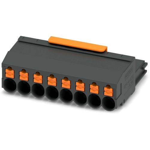 PCB connector, nominal cross section: 4 mm², color: black, nominal current: 24 A, rated voltage (III/2): 1000 V, contact surface: Tin, contact connection type: Socket, number of rows: 1, number of positions: 8, product range: SPC 4/..-STTL, pitch: 6.35 mm, connection method: Push-in spring connection, conductor/PCB connection direction: 0 °, locking clip: - without locking clip, plug-in system: COMBICON PC 4, locking: Snap-in locking, mounting: Self-locking flange.
