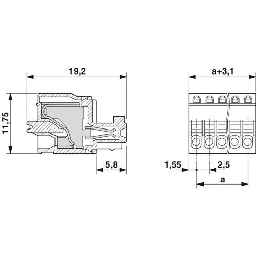 Socket header, 5 pole, pitch 2.5 mm, straight, green, 1881354