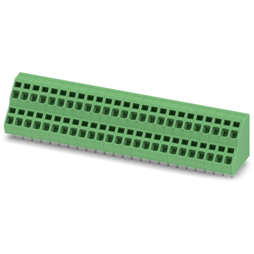 PCB terminal block, nominal current: 17.5 A, rated voltage (III/2): 400 V, nominal cross section: 2.5 mm², number of potentials: 50, number of rows: 2, number of positions per row: 25, pitch: 5.08 mm, connection method: spring-cage connection, conductor/PCB connection direction: 45 °, color: green, pin layout: linear pinning, solder pin: 3.5 mm, number of solder pins per potential: 1.