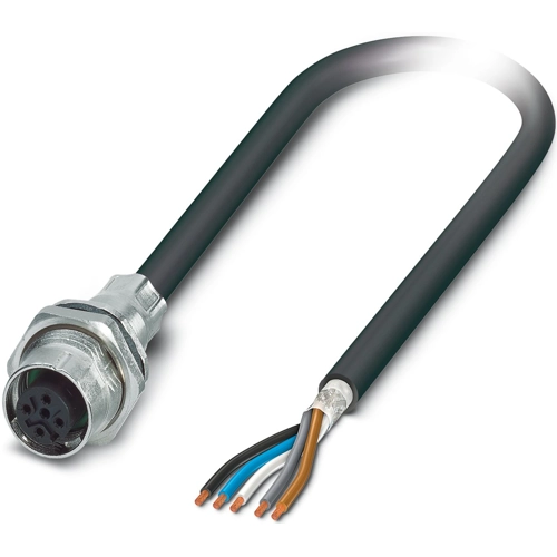Sensor actuator cable, M16 panel socket, straight to open end, 5 pole, 2 m, PUR, black/gray, 4 A, 1224385