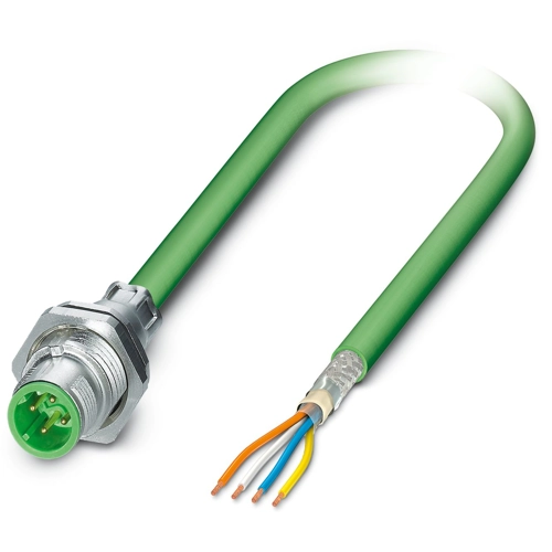 Device connector rear mounting, PROFINET CAT5 (IEC 11801:2002) (100 Mbps), EtherCAT® CAT5 (100 Mbps), 4-position, Pin, straight, M12-SPEEDCON, D-coding, on free cable end, Cable connection, cable length: 1 m.