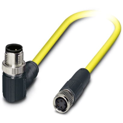 Sensor/actuator cable, 4-position, PVC, Yellow, Shielded, Plug angled M12, Coding: A, on socket straight, M8, Cable length: 0.5 m