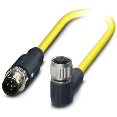 Sensor actuator cable, M12-cable plug, straight to M12-cable socket, angled, 5 pole, 0.5 m, PVC, yellow, 4 A, 1406135