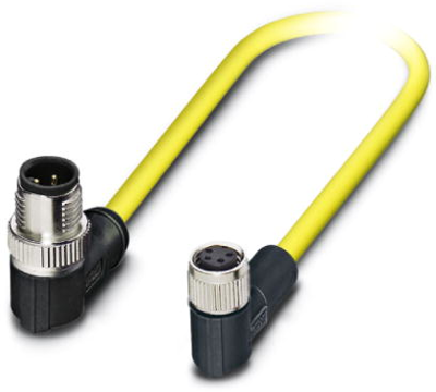Sensor/actuator cable, 4-position, PVC, Yellow, Plug angled M12 SPEEDCON, Coding: A, on socket angled, M8, Cable length: 1.5 m
