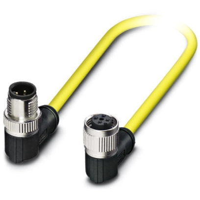 Sensor actuator cable, M12-cable plug, angled to M12-cable socket, angled, 4 pole, 0.5 m, PVC, yellow, 4 A, 1406234