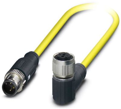 Sensor actuator cable, M12-cable plug, straight to M12-cable socket, angled, 3 pole, 1.5 m, PVC, yellow, 4 A, 1406253