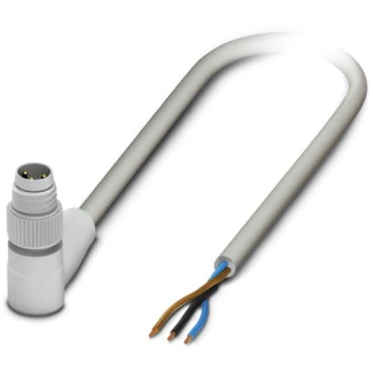 Sensor actuator cable, M8-cable plug, angled to open end, 3 pole, 10 m, PP-EPDM, gray, 4 A, 1406476