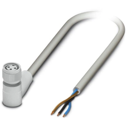 Sensor actuator cable, M8-cable socket, angled to open end, 3 pole, 3 m, PP-EPDM, gray, 4 A, 1406487
