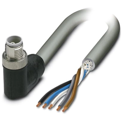 Sensor actuator cable, M12-cable plug, angled to open end, 5 pole, 5 m, PUR, gray, 16 A, 1414859