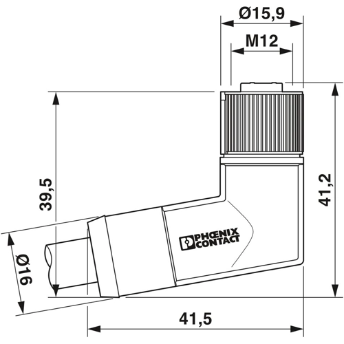 Power cable, 4-position, PVC, Black-gray RAL 7021, Socket angled M12, Coding: L, on free cable end, Cable length: 5 m, for direct current up to 12 A/63 V