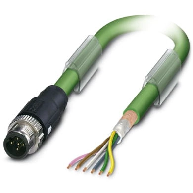 Bus system cable, INTERBUS (16 Mbps), 5-position, PUR halogen-free, May green RAL 6017, Shielded, Plug straight M12 SPEEDCON, Coding: B, on free cable end, Cable length: 15 m
