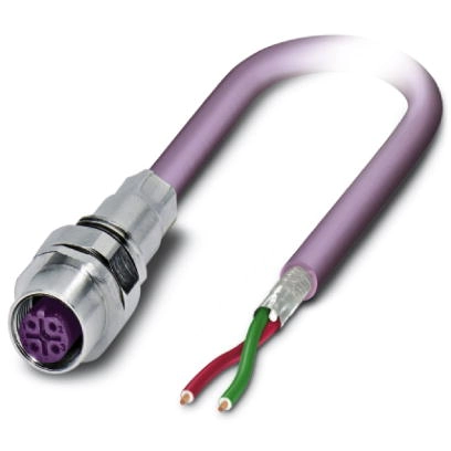 Sensor actuator cable, M12-cable socket, straight to open end, 2 pole, 0.5 m, PUR, purple, 4 A, 1525597