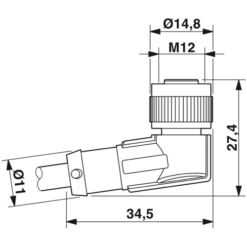 Sensor/actuator cable, 3-position, PUR halogen-free, Black-gray RAL 7021, Plug angled M12, Coding: A, on socket angled, M12, Coding: A, PIN 2+4 bridged, Cable length: 0.6 m
