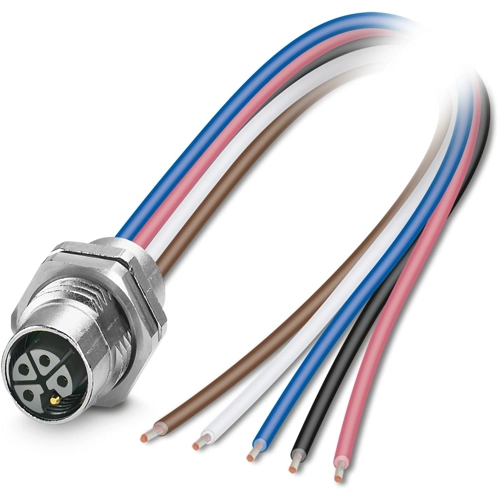 Panel socket, M12, 5 pole, strand connection, straight, 1239544