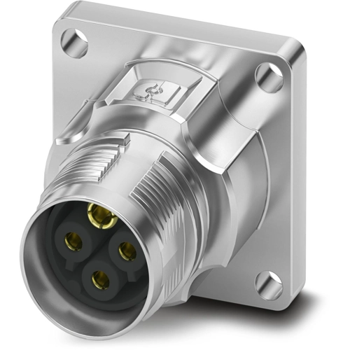 M17, Device connector front mounting, series: M17 PRO, straight, shielded: yes, for standard and ONECLICK fast locking system, No. of pos.: 3+PE, Direction of rotation: Standard, contact connection type: Socket, Crimp connection, flange dimensions: 28 mm x 28 mm, coding: N, Item is lead-free in accordance with RoHS II without Exemption 6c (Pb < 0.1 %).