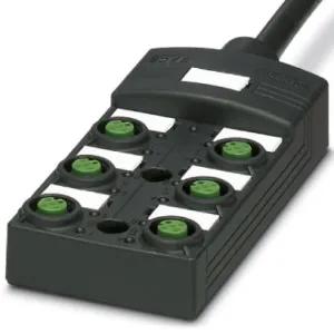 Sensor/actuator box, Application: standard, Connection method: M12-SPEEDCON-socket plastic, Number of slots: 6, Number of positions: 4, Coding: A-standard, Slot assignment: single, Status display: No, Universal; Master cable connection: Fixed connection 180°, PUR/PVC, Cable length: 10 m, Shielding: no