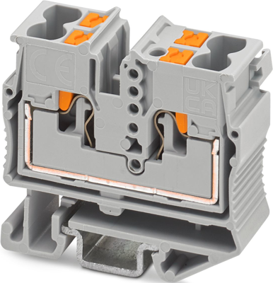 Mini feed-through terminal block, nominal voltage: 800 V, nominal current: 24 A, number of connections: 4, number of positions: 1, connection method: Push-in connection, Rated cross section: 2.5 mm², cross section: 0.14 mm²-4 mm², mounting type: NS 15, color: gray.