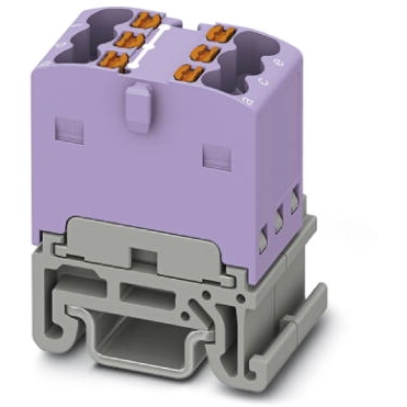 Distribution block, the block can be bridged with one another via the conductor shaft, for corresponding plug-in bridges, see accessories, bridged internally, rated voltage: 500 V, nominal current: 17.5 A, connection method: Push-in connection, cross section: 0.14 mm² - 2.5 mm², mounting type: NS 15, color: violet.