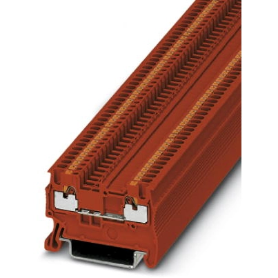 Feed-through terminal block, rated voltage: 500 V, nominal current: 17.5 A, connection method: Push-in connection, 1 level, Rated cross section: 1.5 mm², cross section: 0.14 mm² - 1.5 mm², mounting type: NS 35/7,5, NS 35/15, color: red.