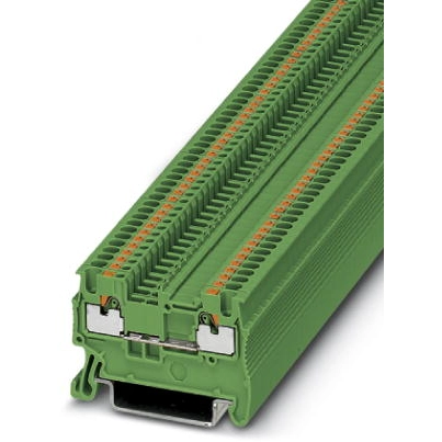 Feed-through terminal block, rated voltage: 500 V, nominal current: 17.5 A, connection method: Push-in connection, 1 level, Rated cross section: 1.5 mm², cross section: 0.14 mm² - 1.5 mm², mounting type: NS 35/7,5, NS 35/15, color: green.