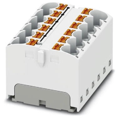 Distribution block, the block can be bridged with one another via the conductor shaft, for corresponding plug-in bridges, see accessories, bridged internally, rated voltage: 450 V, nominal current: 32 A, connection method: Push-in connection, cross section: 0.2 mm² - 6 mm², mounting type: for snapping onto a DIN rail adapter, Direct mounting with flange, Free-hanging, color: white.