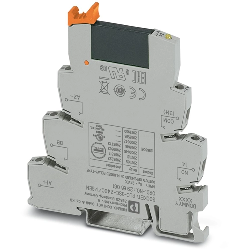 PLC-INTERFACE, consisting of PLC-BSC.../21 basic terminal block with screw connection and plug-in miniature solid-state relay, for mounting on DIN rail NS 35/7,5, 1 N/O contact, input: 24 V DC, output: 24 - 253 V AC/0.75 A.