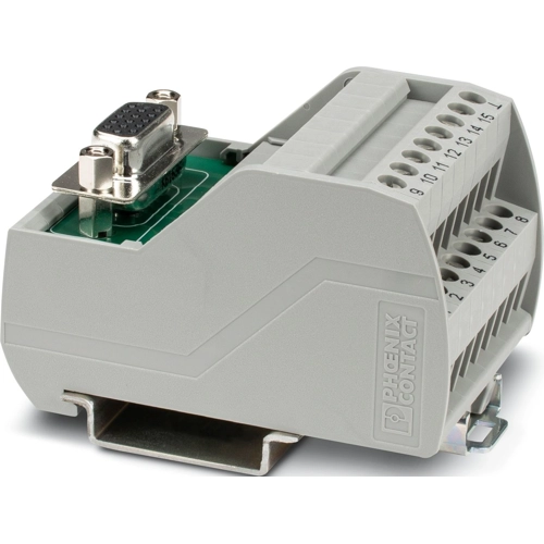 VARIOFACE module, with screw connection and high density D-Subminiature female connector, for mounting on NS 35, no. of positions: 15, width: 44.9 mm.