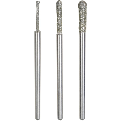Ball-shaped diamond-coated grinding bit for glass and stone. For drilling and machining of glass and types of stone reaching to granite. Recommended for use on drill presses with a speed of 2,000rpm with the addition of coolant. Shaft Ø 2.35mm.