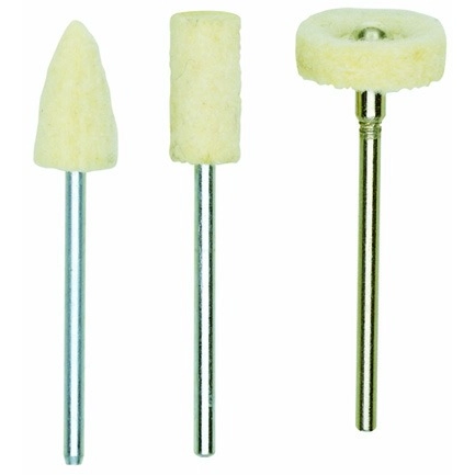 For preliminary and high burnish polishing of metal, gold, silver, brass and aluminium with the use of polishing paste. Also for final polishing in mould and die-making. Shaft Ø 2.35. Work with a lower rotational speed when polishing. Soften hard polishing paste with oil or heat up lightly.
