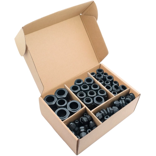 60 pcs plastic cable gland set metric thread, black.