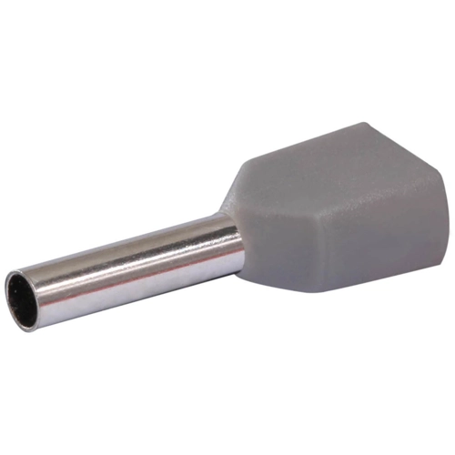Insulated twin wire end ferrule, 0.75 mm², 8 mm long, gray, 22C434, package with 100 pieces