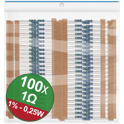 Metal film resistor, 1 Ω, 0.25 W, ±1 %, Bag with 100 pieces, 22P038, package with 100 pieces