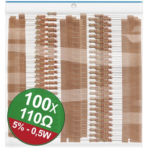 Carbon film resistor, 100 Ω, 0.5 W, ±5 %, 22P110, package with 100 pieces