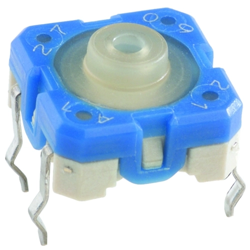 Short-stroke pushbutton, 1 Form A (N/O), 100 mA/35 V, unlit , actuator (white/blue, L 1.11 mm), 3.6 N, THT, 1.14.001.501/0000
