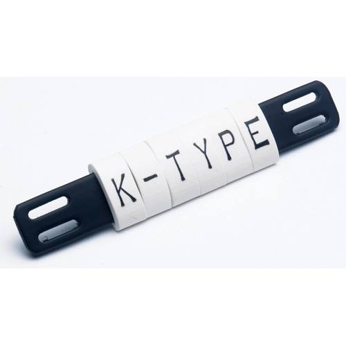 The K-type marker comes in one standard size to fit carrier strips that can hold from 7 to 18 markers and are made from a plasticized PVC material. Suitable for industrial applications.