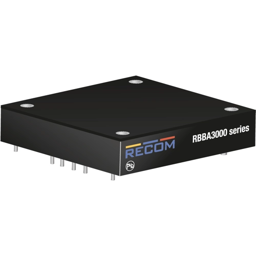 The RBBA3000-50 is a high-efficiency non-isolated buck/boost converter with up to 50A output current in a half-brick case. The input voltage range is from 9-60VDC, and the output voltage (0-60V) and current (0-50A) are independently set via fixed trim resistors or an external voltage. The Ishare pin has two functions: it can be used to monitor the load current in stand-alone applications, or it can be used to connect multiple modules in parallel to double the maximum output current to 100A. Typical applications include 48V to 24V or 12V to 24V battery power conversion, electric vehicles, battery voltage stabilizers, or high-power laboratory DC power supplies.
