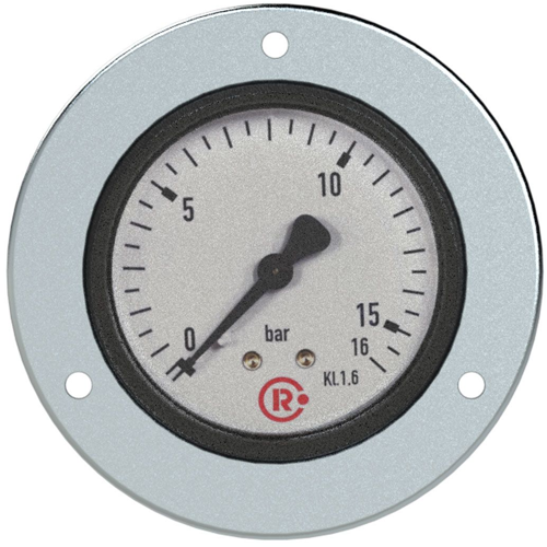 The pressure gauge is based on the proven Bourdon tube measuring system. On pressurisation, the deflection of the Bourdon tube, proportional to the incident pressure, is transmitted to the movement via a link and indicated. The modular design enables a multitude of combinations of case materials, process connections, nominal sizes and scale ranges. Due to this high variance, the instrument is suitable for use in a wide range of applications within industry. For mounting in control panels, the pressure gauges can, depending on the process connection, be fitted with a surface mounting flange or with a triangular bezel and mounting bracket. The standard version of the 101862 is manufactured, cost-optimised on modern production lines, in volumes of several million instruments per year.