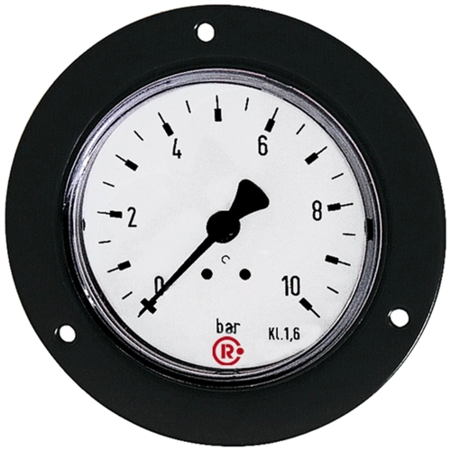 The pressure gauge is based on the proven Bourdon tube measuring system. On pressurisation, the deflection of the Bourdon tube, proportional to the incident pressure, is transmitted to the movement via a link and indicated. The modular design enables a multitude of combinations of case materials, process connections, nominal sizes and scale ranges. Due to this high variance, the instrument is suitable for use in a wide range of applications within industry. For mounting in control panels, the pressure gauges can, depending on the process connection, be fitted with a surface mounting flange or with a triangular bezel and mounting bracket. The standard version of the 101904 is manufactured, cost-optimised on modern production lines, in volumes of several million instruments per year.