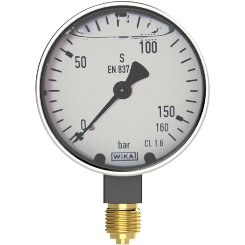 Glycerine pressure gauge with metal housing, Connection radial bottom, G 1/4, Goods class 1.6, Measurement range -1 / +3 bar, Ø 63. Glycerine-filled bourdon-tube pressure gauge. For measurements in areas with high, dynamic pressure loads and vibration levels. Suitable for gaseous or liquid media which do not corrode copper alloy, do not have high viscosity and do not crystallise.