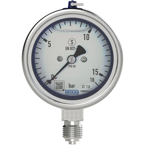 This high-quality Bourdon tube pressure gauge has been designed especially for increased safety requirements within the process industry. The use of high-quality stainless steel materials and the robust design are geared to applications in the chemical and process engineering industries. Thus the instrument is suitable for liquid and gaseous media, also in aggressive environments. WIKA manufactures and qualifies the pressure gauge in accordance with the requirements of the EN 837-1 European standard in the “S3” safety version. The safety version is made up of a non-splintering window, a solid baffle wall between measuring system and dial and a blow-out back. In the event of a failure, the operator is protected at the front side, as media or components can only be ejected via the back of the case.