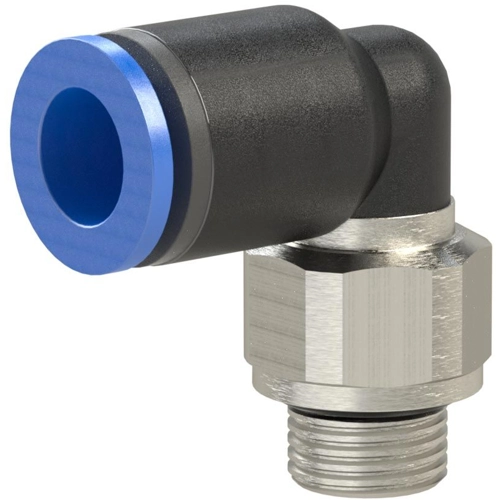 L push-in fitting, 10 bar, plastic/brass, nickel-plated, for hose, 109274