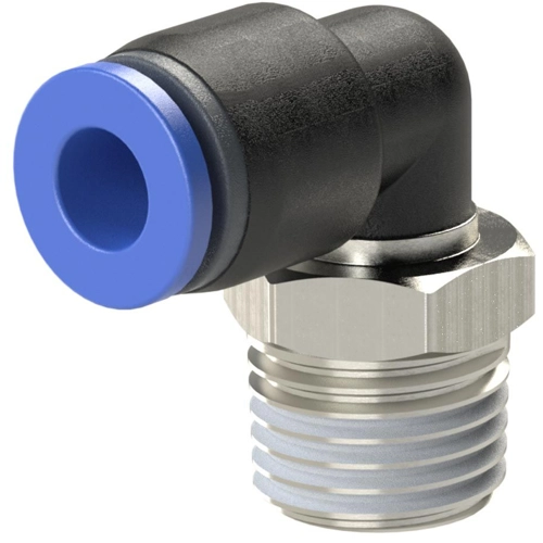 L push-in fitting, 10 bar, plastic/brass, nickel-plated, for hose, 109282