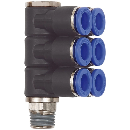 L multiple distributor, L 58.5 mm, 10 bar, plastic/brass, nickel-plated, for hose, 109722